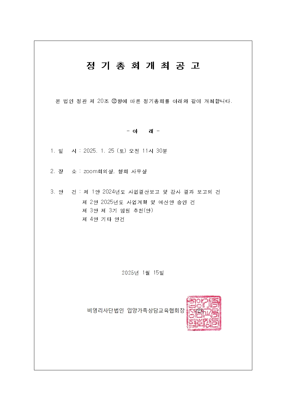 2024년도 정기총회 개최공고